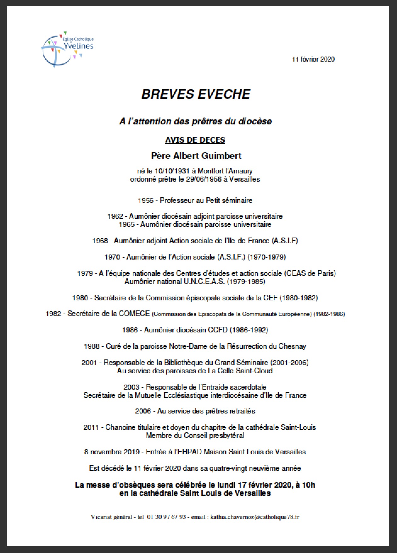 Annonce du décès d'Albert Guimbert par Philippe Bourgeois |